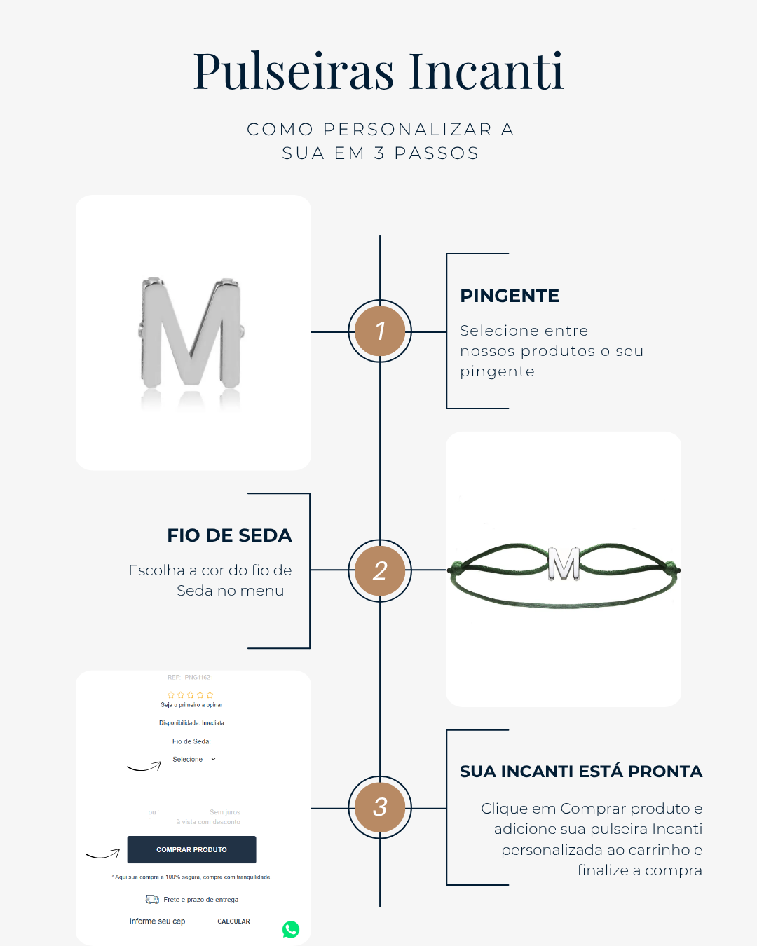Monte sua Pulseira: Combine o fio de seda com o pingente escolhido e crie uma joia que é verdadeiramente sua.