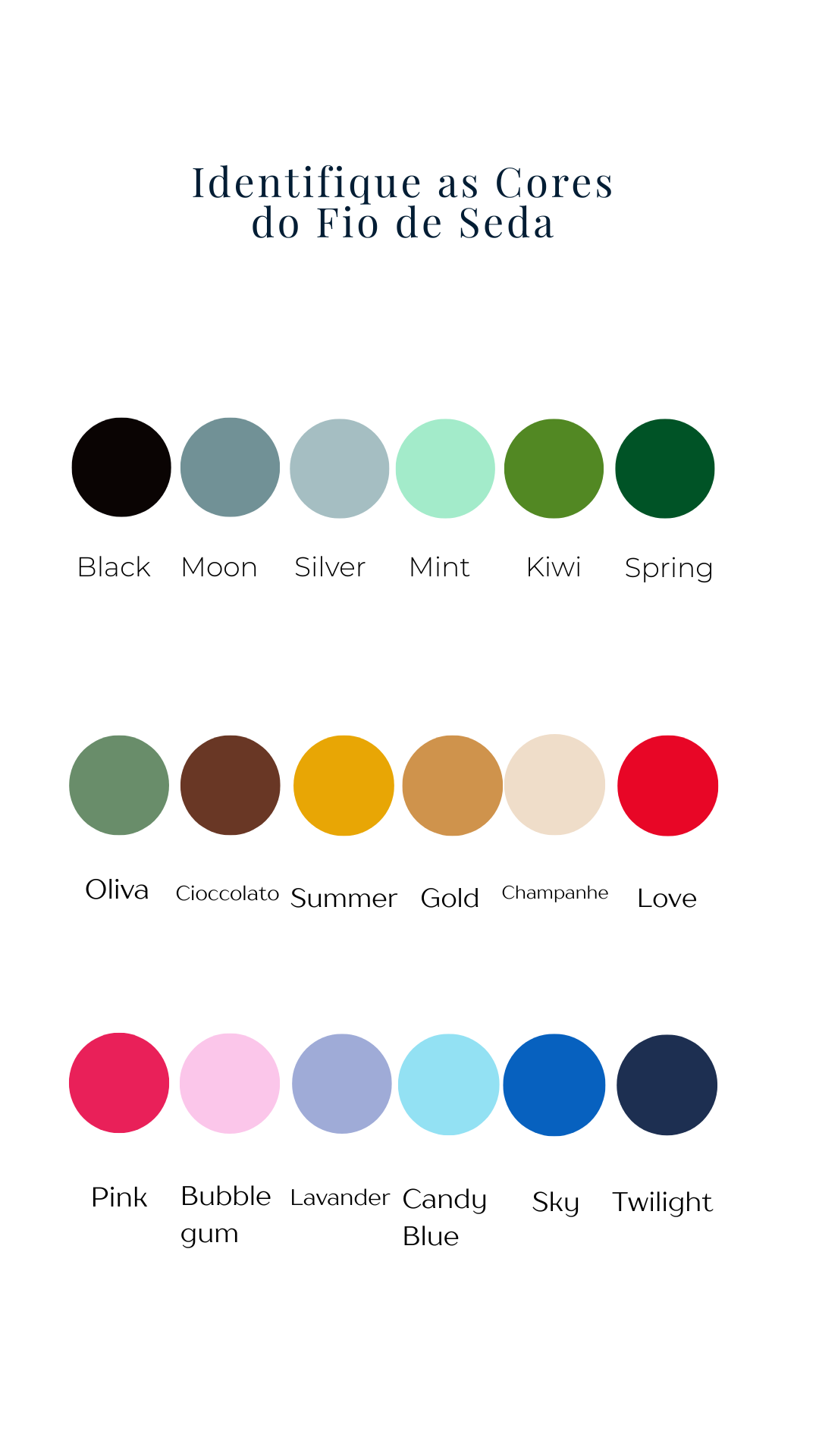 * Escolha a Cor do Fio de Seda: Temos uma paleta sofisticada de cores para que você possa escolher aquela que melhor combina com seu estilo ou com a ocasião.